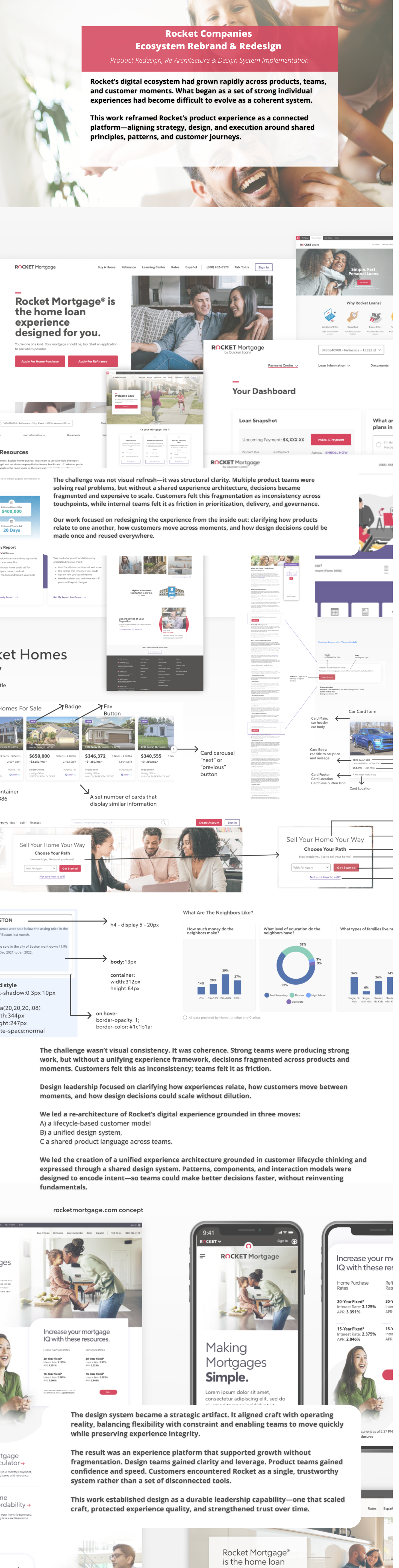Disparate Designs for Disparate Purposes. My teams shaped separate product strategies and engagement for Rocket into a cohesive platform designed to support long-term homeowner relationships.